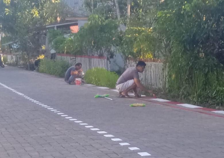 Pantawan wartawan LacakPos saat pengecetan paving dengan panjang 150 meter dan lebar 5 meter, itu dilakukan Hukumtua bersama Perangkatnya dalam pekerjaan tersebut.