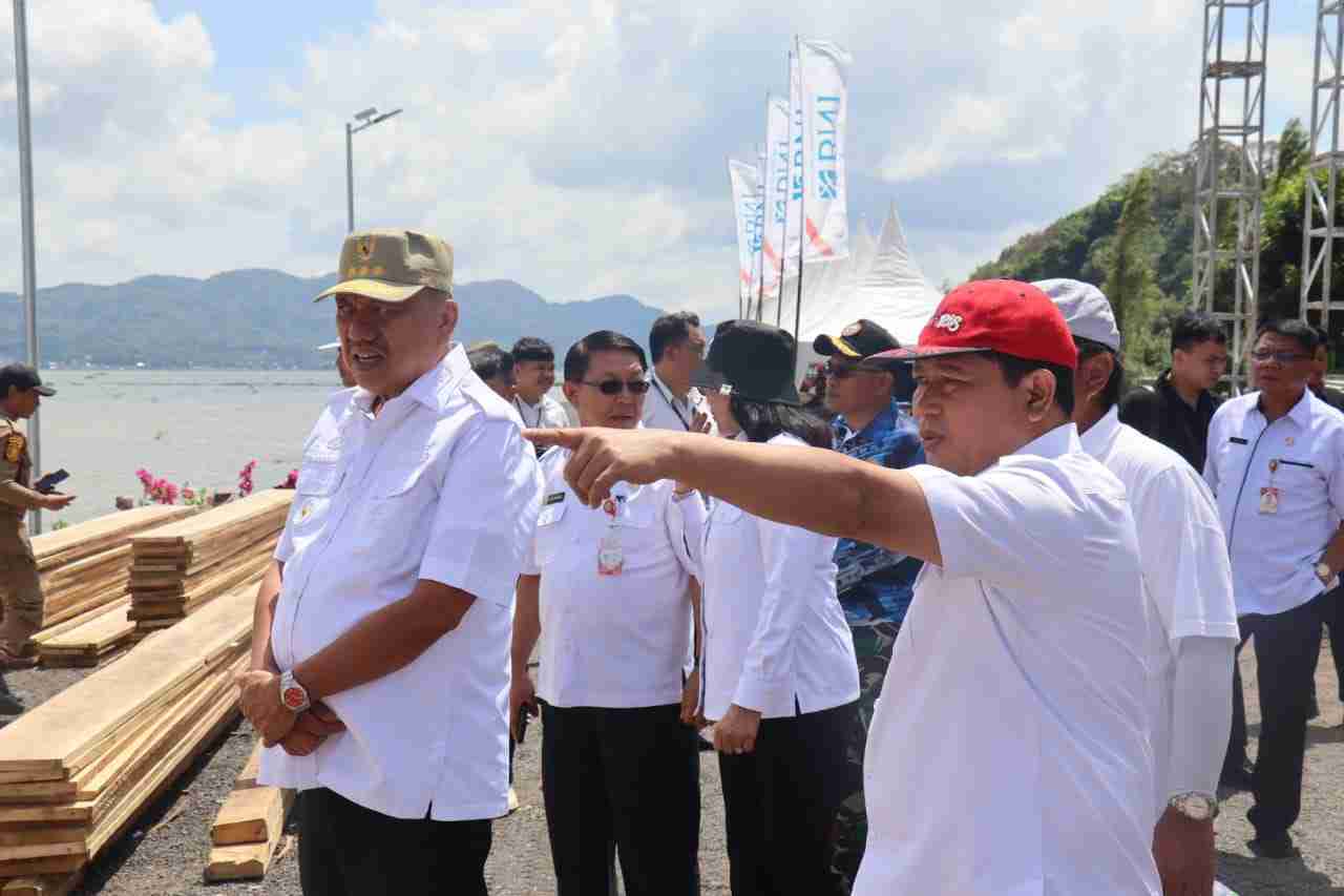 Gubernur Sulawesi Utara, Prof DR (HC) Olly Dondokambey didampingi sejumlah pejabat terkait beserta Penjabat Bupati Minahasa, Dr Jemmy S. Kumendong MSi dan Sekda Dr Lynda Watania, memantau langsung kesiapan lokasi kegiatan yang dipusatkan di Tonsaru, Danau Tondano, Rabu (22/11/2023).
