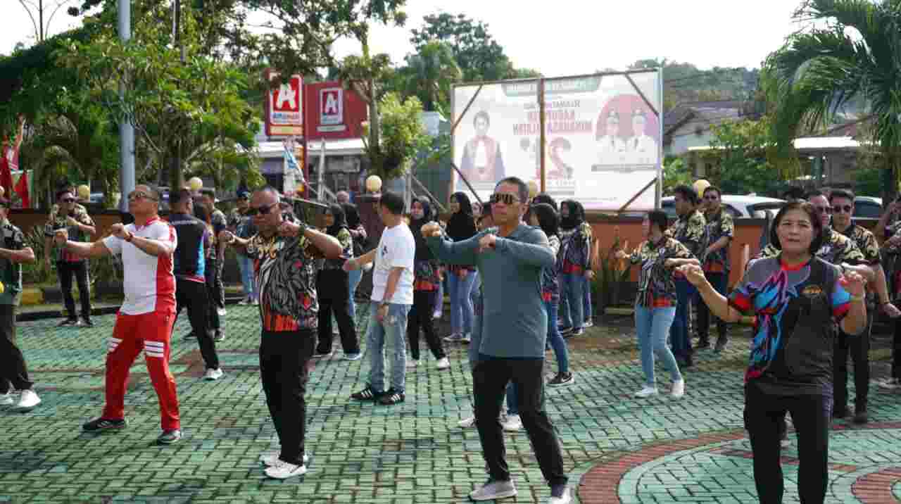 Bupati FDW senam bersama Forkopimda di depan Kantor Pengadilan Minsel.( Eka/Kominfo)