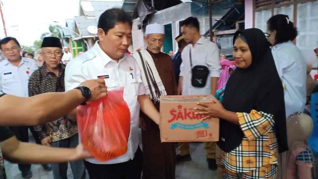 Usai sambutan Bupati, dilanjutkan dengan buka puasa bersama kemudian penyerahan bantuan sosial berupa sembako kepada kaum duafa, lansia dan penyandang disabilitas.