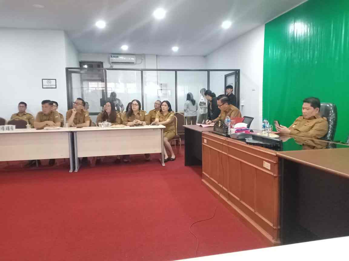 Dalam Rakoor Tersebut diikuti oleh Penjabat Bupati Minahasa Dr. Jemmy Stani Kumendong M.Si, yang bertempat di Ruangan Minahasa Command Center Kantor Bupati Minahasa.