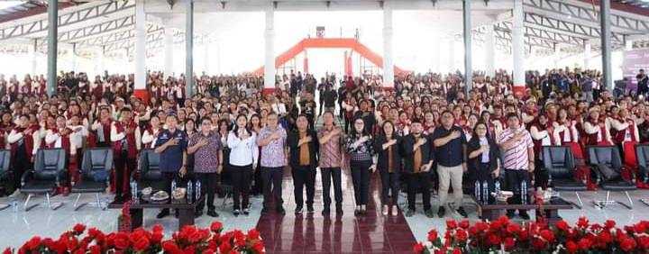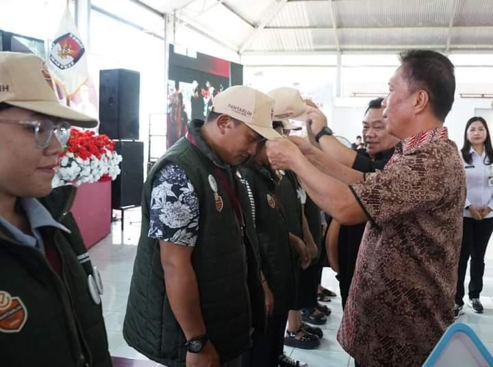 Tomy Moga, S.Pi, M. Si bersama Anggota KPU, Ketua Bawaslu Kabupaten Minahasa Selatan Ibu Eva Keintjem, S.Pd, MAP, bersama Jajaran, serta PPK dan Pantarlih se-Kabupaten Minahasa Selatan.