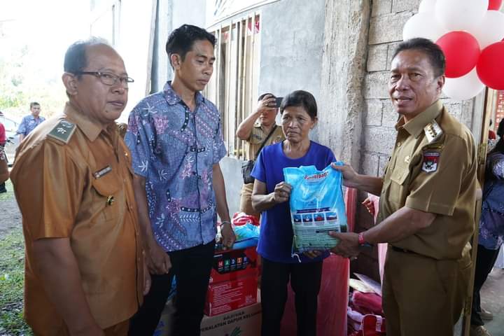 Dalam kesempatan ini Bupati Minahasa Selatan menyerahkan bantuan kepada korban bencana tanah longsor kepada warga Minsel.