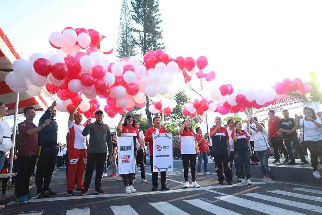 Penjabat Bupati Minahasa Dr.Jemmy Stani Kumendong saat melepas balon gas sambut HUT RI ke-79 Tahun 2024(ist)