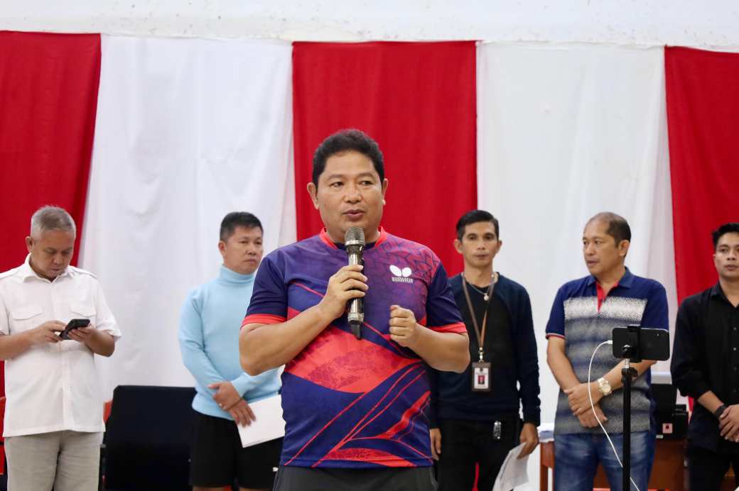 Melky Palilingan selaku ketua panitia menyampaikan terimakasih kepada Jemmy S. Kumendong selaku PJ Bupati Minahasa dan sebagai ketua harian PTMSI SULUT yang telah mensponsori kegiatan Kejuaraan Turnament tenis meja Se Sulawesi Utara.