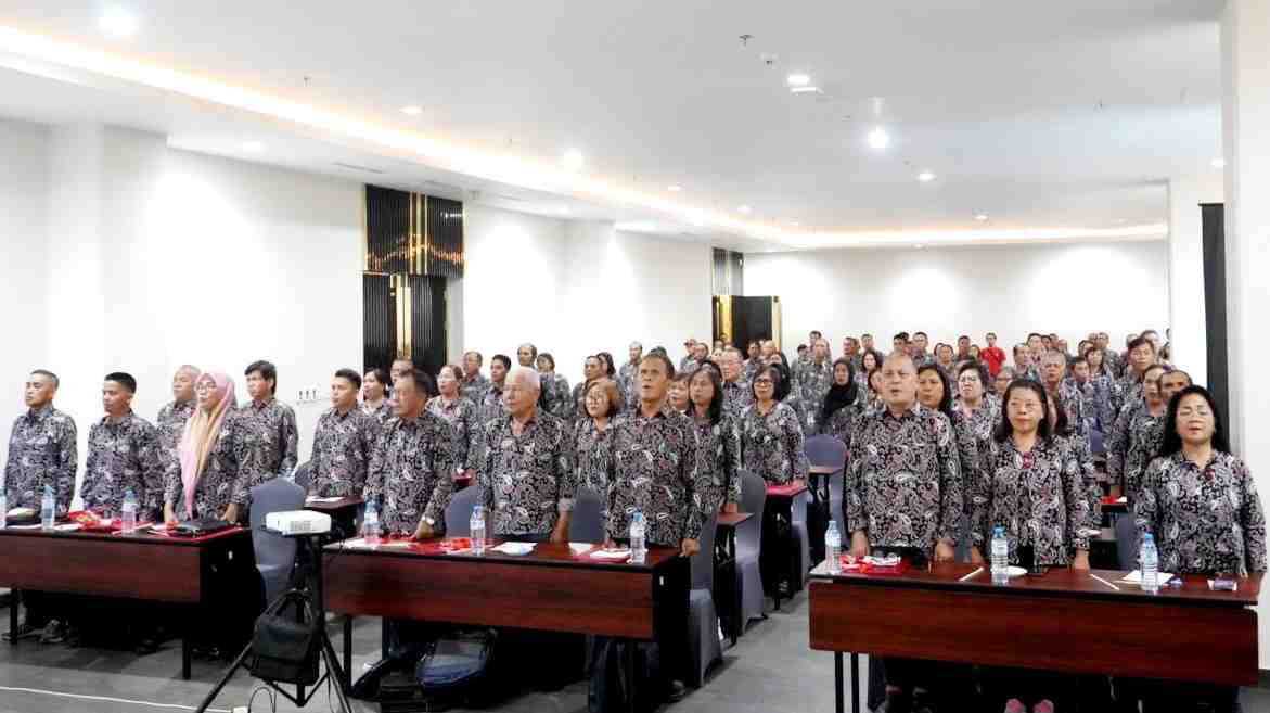 Para Ketua dan Anggota BPD se-Kabupaten Minahasa Selatan sebagai peserta dalam kegiatan ini, sedangkan Bupati Minahasa Selatan didampingi Kepala Dinas PMD bersama Jajaran.