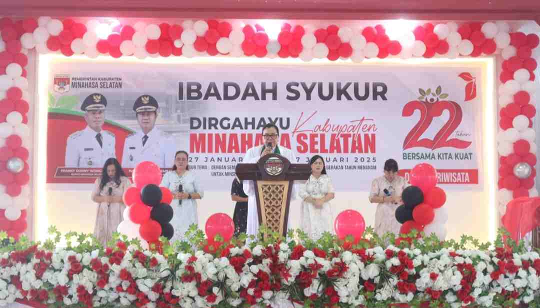 MINSEL – LACAKPOS.CO.ID – Ibadah HUT Minahasa Selatan Ke-22 Tahun 2025, yang dilaksanakan di Aula Waleta Kantor Bupati Minahasa Selatan, pada Kamis, (30/01/2025).