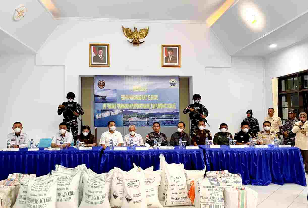 SANGIHE – LACAKPOS.CO.ID – Pangkalan TNI Angkatan Laut (Lanal) Tahuna menggelar konferensi pers terkait pelimpahan barang bukti bahan berbahaya dan beracun (B3), berkas kapal KM. Payaman, serta penangkapan dua kapal pumpboat asal Filipina, Rabu (6/8/2025), bertempat di Markas Komando Lanal Tahuna.