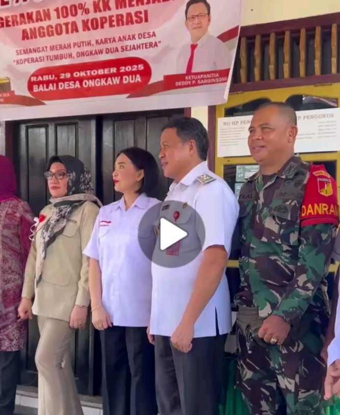 “Mulai hari ini, Kamis, 29 Oktober 2025, 100% Kepala Keluarga Desa Ongkaw 11 (Dua) resmi menjadi anggota Koperasi Desa Merah Putih. Ini jawaban kami atas panggilan Presiden Republik Indonesia untuk memperkuat ekonomi rakyat melalui gerakan koperasi.”