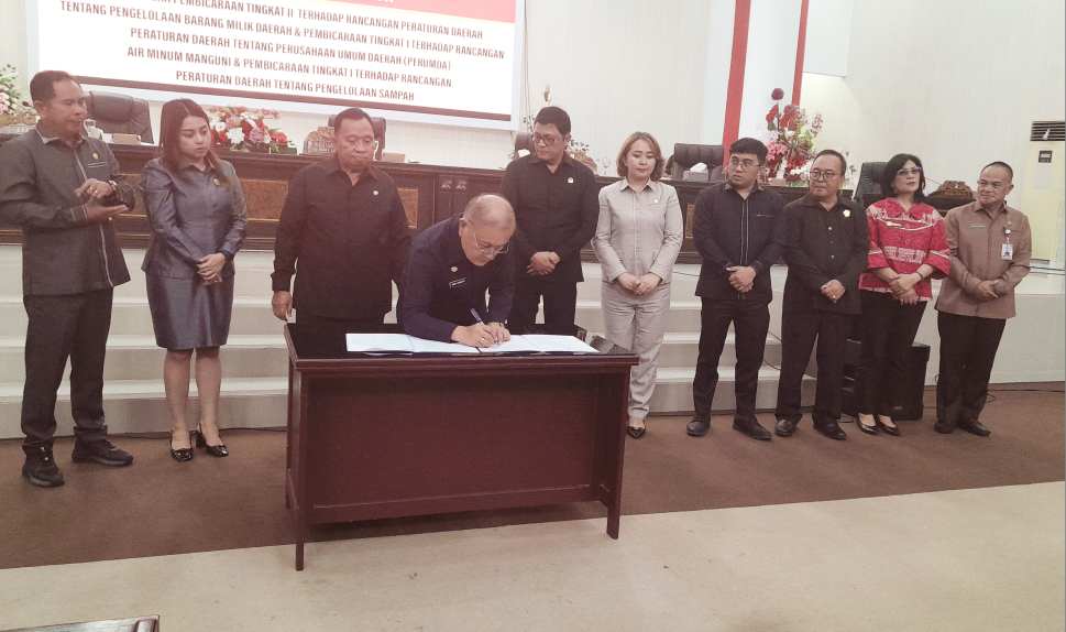 Pada pembahasan tingkat II, DPRD menyetujui Ranperda tentang Pengelolaan Barang Milik Daerah untuk ditetapkan menjadi Peraturan Daerah (Perda). Selanjutnya, pada pembahasan tingkat I, dibahas Ranperda tentang Perusahaan Umum Daerah (Perumda) Air Minum Manguni dan Ranperda tentang Pengelolaan Sampah.